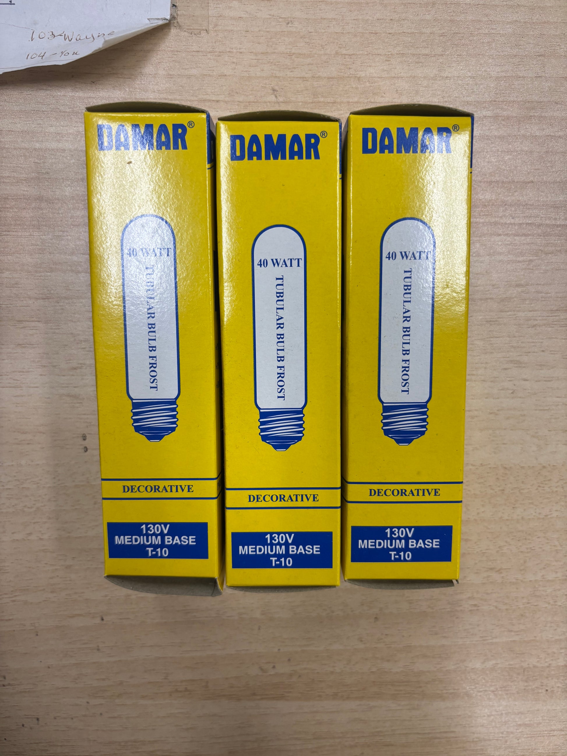 Bring smooth, even lighting to your space with the Damar #214B Frost T-10 Light Bulb (3-Pack). Designed with a frosted finish to reduce glare and soften brightness, these bulbs offer beautiful, uniform light for any setting. Perfect for display cases, accent fixtures, and general lighting, each T-10 bulb combines clarity, efficiency, and dependability. Built to last and crafted for performance, Damar delivers reliable lighting solutions you can trust.