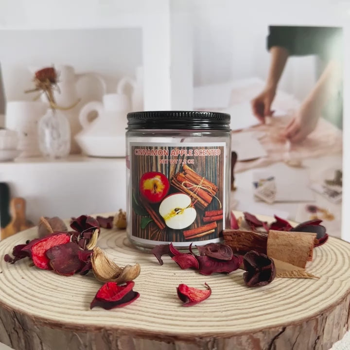 Bring the cozy scents of autumn into your home with our Fall Scented Candle. Featuring warm and inviting fragrances like Cinnamon, Apple Pumpkin, Vanilla, and Sandalwood, this 7.2oz soy wax candle provides over 50 hours of burn time, filling any room with a comforting aroma.