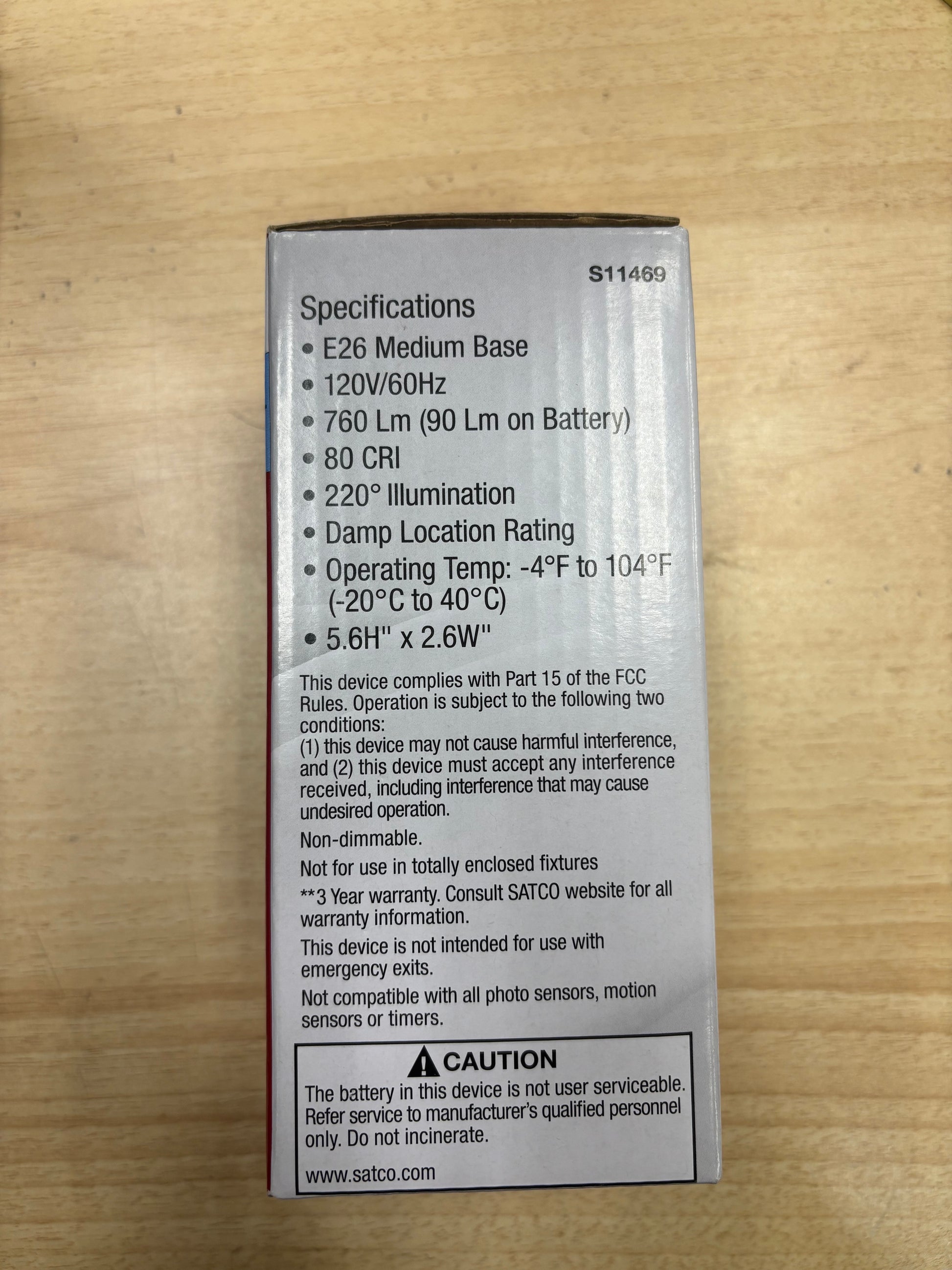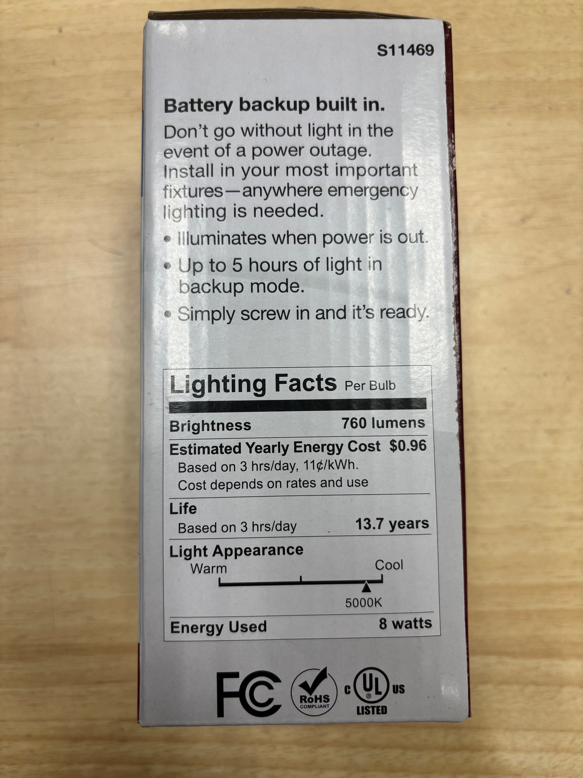 Never be left in the dark with the Satco S11469 LED Battery Backup Bulb. Designed to provide up to 5 hours of light during power outages, this innovative bulb functions just like a standard A19 LED when power is on, then automatically switches to battery mode when the power goes out. Perfect for homes, offices, and safety kits, it offers warm 2700K light, energy-efficient performance, and easy installation in any standard light socket. Stay safe, stay prepared, and stay bright with Satco’s trusted reliability.